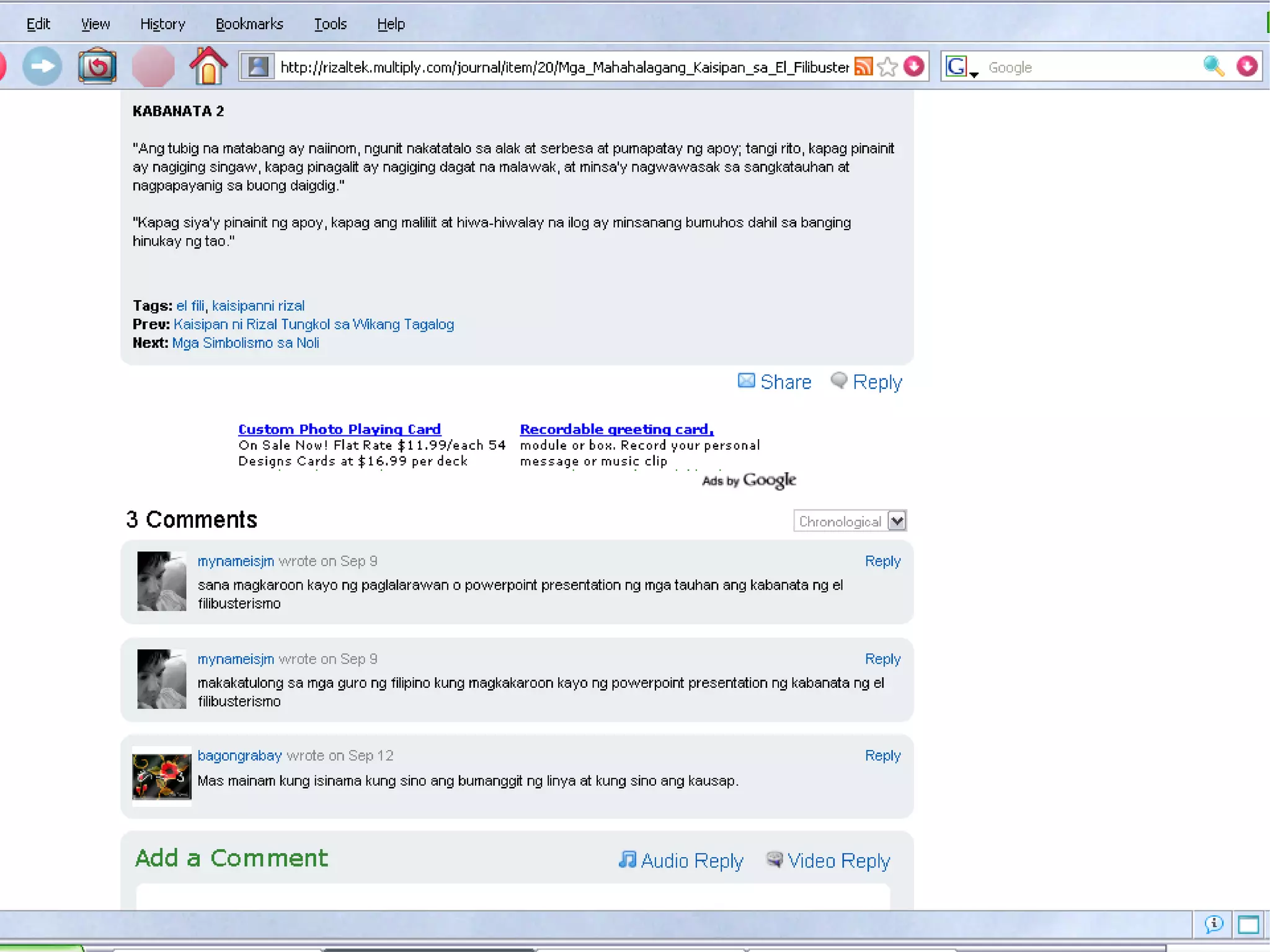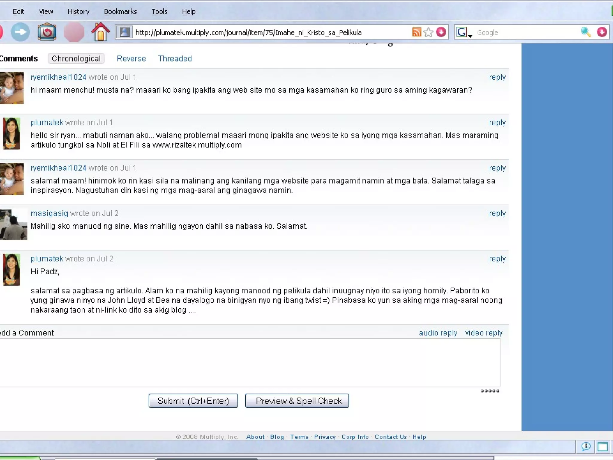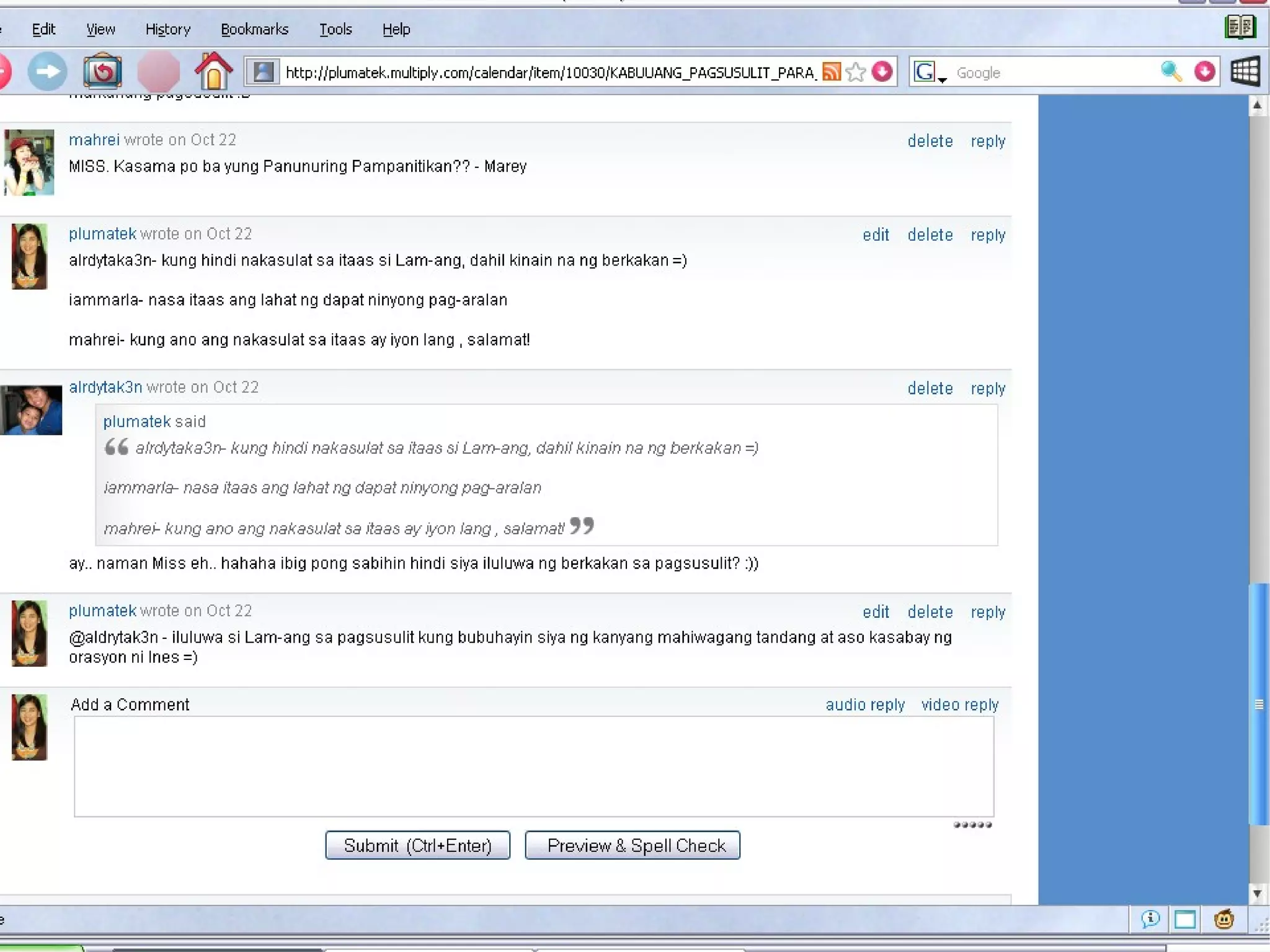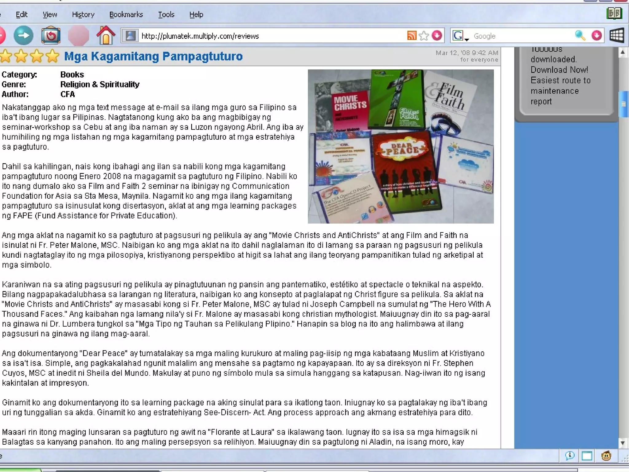 This presentation discusses using the social network Multiply for teaching Filipino literature, highlighting the benefits of increased accessibility, collaboration, and improved writing skills. It includes personal experiences with blogging, setting up a blog, and emphasizes the importance of technology in education. The conclusion stresses active engagement, creativity, and professional networking as essential components of teaching and learning.