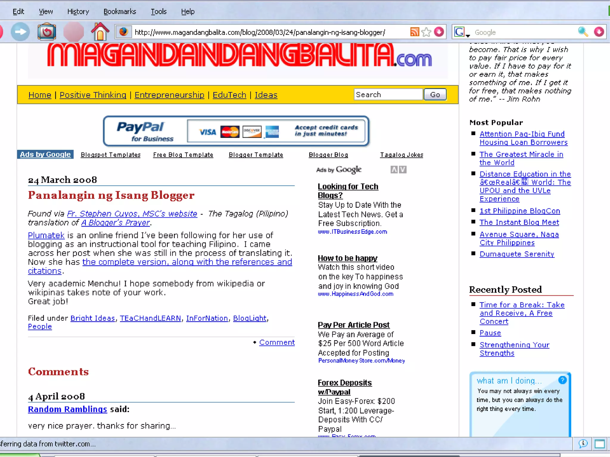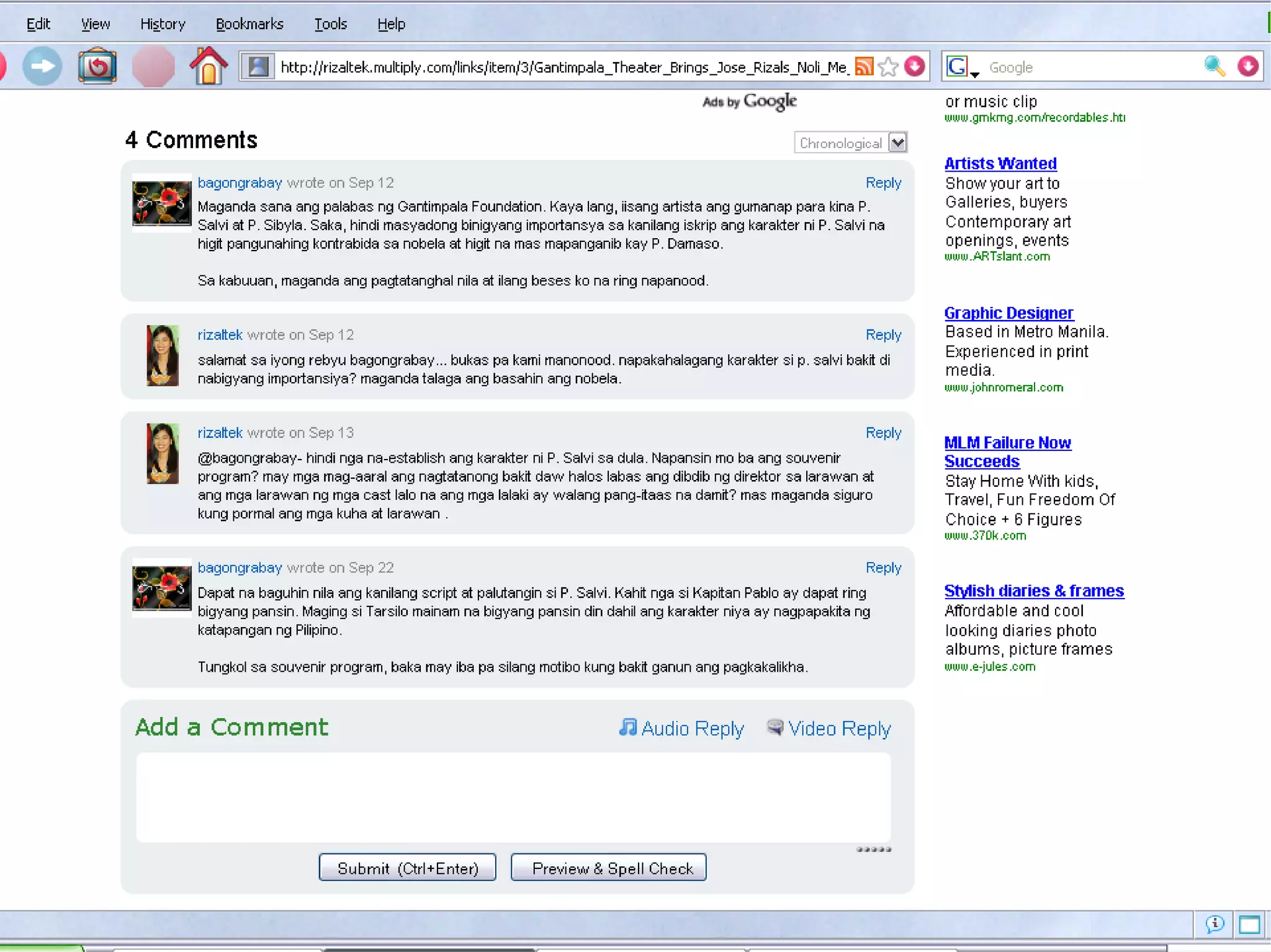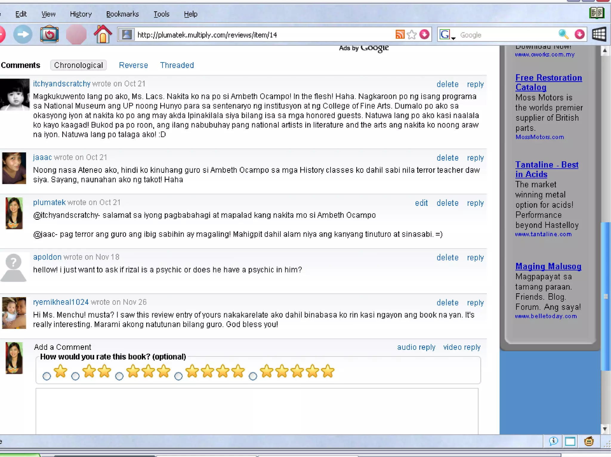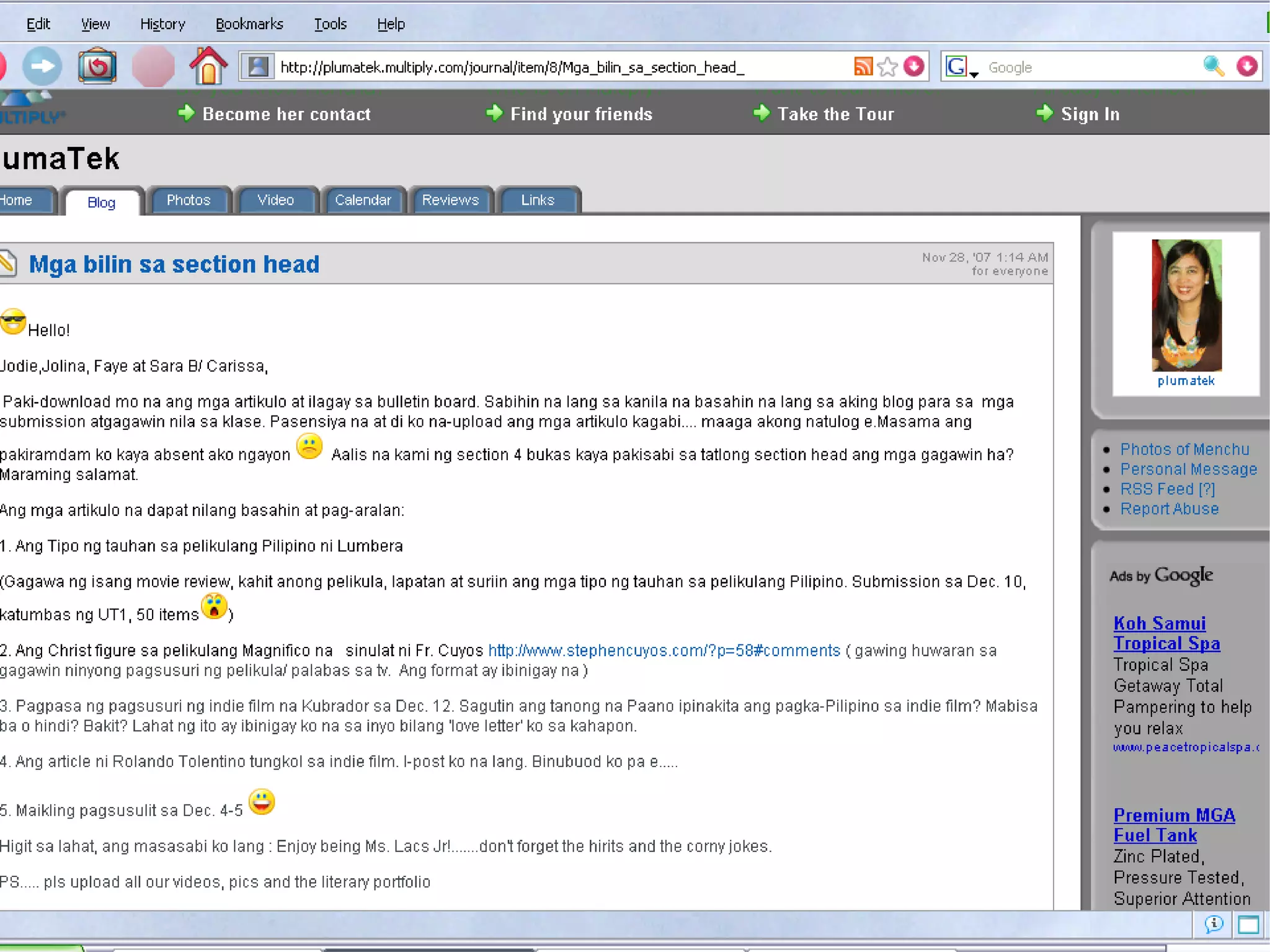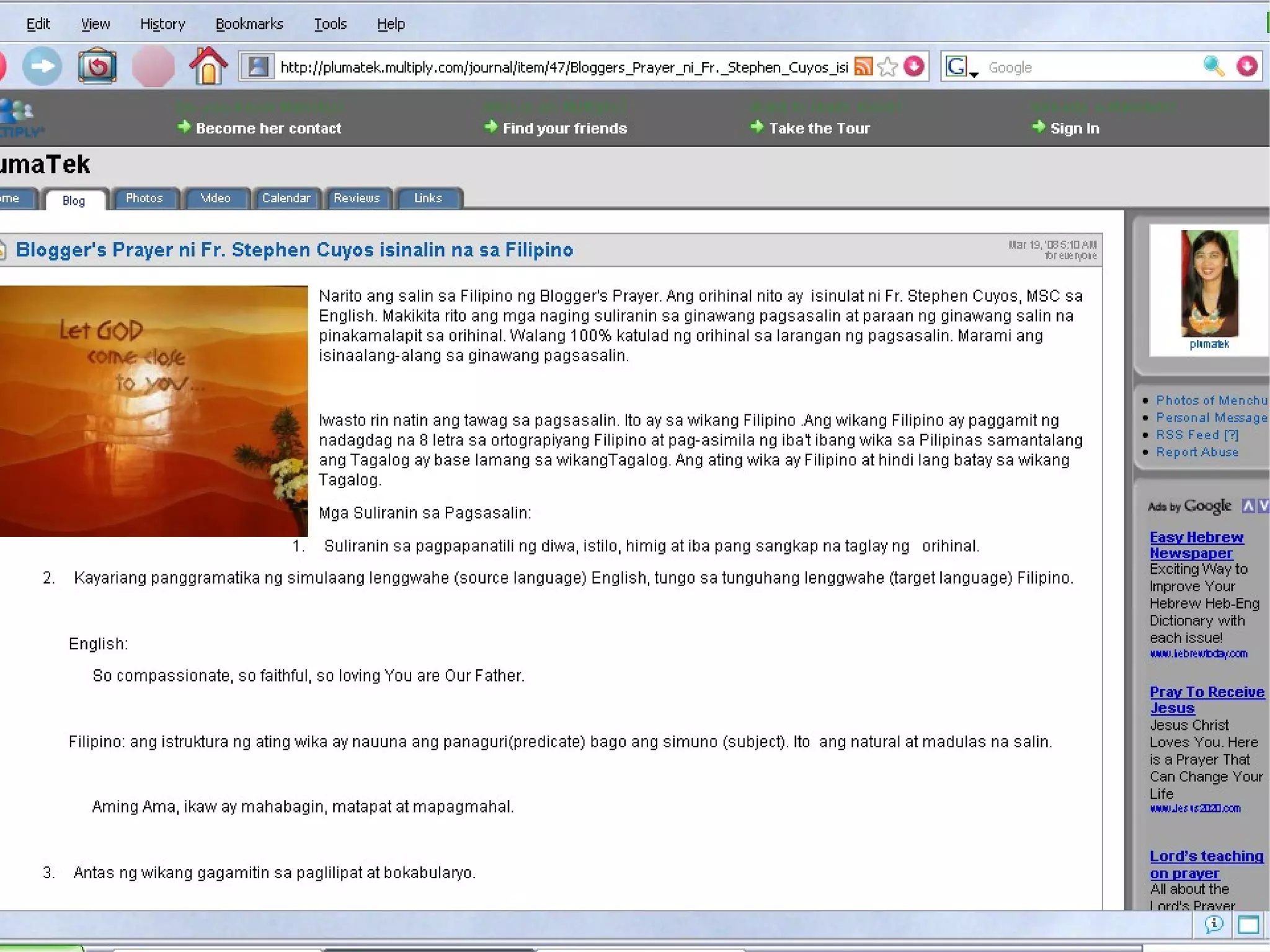 This presentation discusses using the social network Multiply for teaching Filipino literature, highlighting the benefits of increased accessibility, collaboration, and improved writing skills. It includes personal experiences with blogging, setting up a blog, and emphasizes the importance of technology in education. The conclusion stresses active engagement, creativity, and professional networking as essential components of teaching and learning.