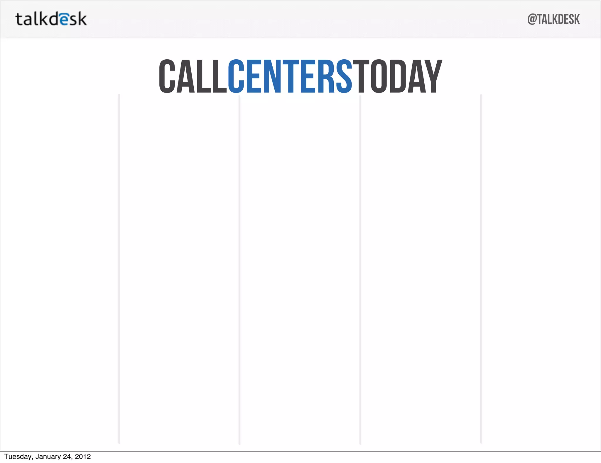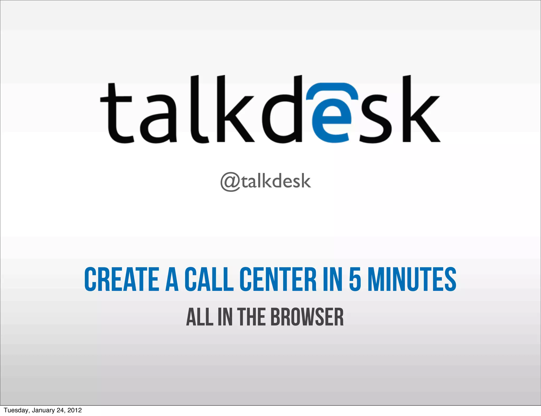 This document discusses Talkdesk, a cloud-based call center solution that allows users to create a call center with up to 10,000 agents entirely within a web browser. It offers international phone numbers, support for public and CRM data, call recording and transcription capabilities. Pricing is $49 per agent per month with the first agent free, and $0.04 per call minute. The company is gaining traction with over 4,500 agents on its waiting list and has raised $400k in funding as it seeks partnerships and clients.