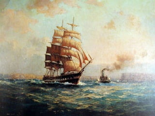 This short document discusses Tall Ships paintings and provides instructions for listening to accompanying music or exiting the program. It focuses on Tall Ships, includes details about paintings of sailing vessels, and offers options to continue listening to music or quit by pressing 'Esc'.