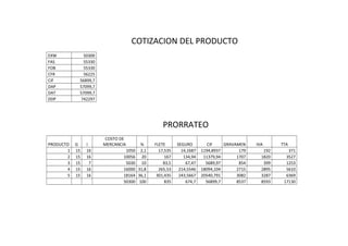 MERCANCIA % FLETE SEGURO CIF GRAVAMEN IVA TTA