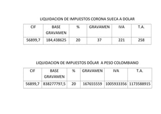 LIQUIDACION DE IMPUESTOSCORONA SUECA A DOLAR