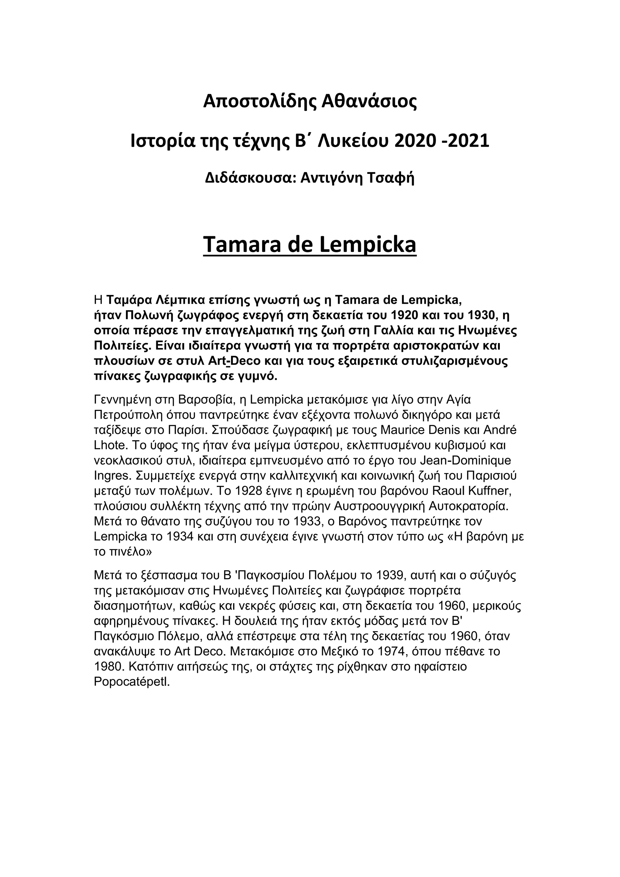 Ιστορία τηςτέχνης Β΄ Λυκείου 2020 -2021