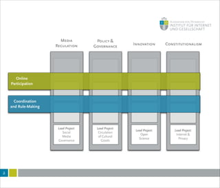 This document summarizes a lecture on internet governance and rule-making. It discusses how definitions of internet governance have evolved from a focus on policy organizations and steering to recognize decentralized and heterogeneous governance arrangements. Governance is examined through different disciplinary lenses and as a process of coordination rather than just regulation. New perspectives are needed that consider informal norms, discourses and framings, and how technologies structure communication and regulation. Internet governance involves coordination among many actors through diverse rules and mechanisms beyond just institutions.