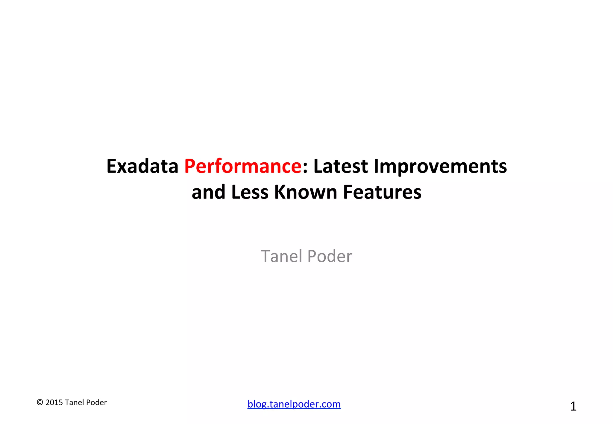 This document discusses recent improvements to Oracle Exadata performance, including improved SQL monitoring in Oracle 12c, enhancements to storage indexes and flash caching, and additional metrics available in AWR. It provides details on new execution plan line level metrics in SQL monitoring reports and metrics for storage cell components now visible in AWR. The post outlines various flash cache features and behavior in earlier Oracle releases.