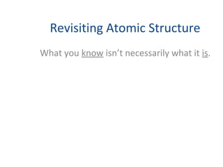 The document discusses light and atomic structure. It explains that electrons can only occupy certain energy levels within an atom and will absorb or emit photons of light of specific wavelengths as they move between these levels. The document also introduces the Bohr model of the hydrogen atom and how electrons transitioning between energy levels leads to emission spectra that are unique for each element.
