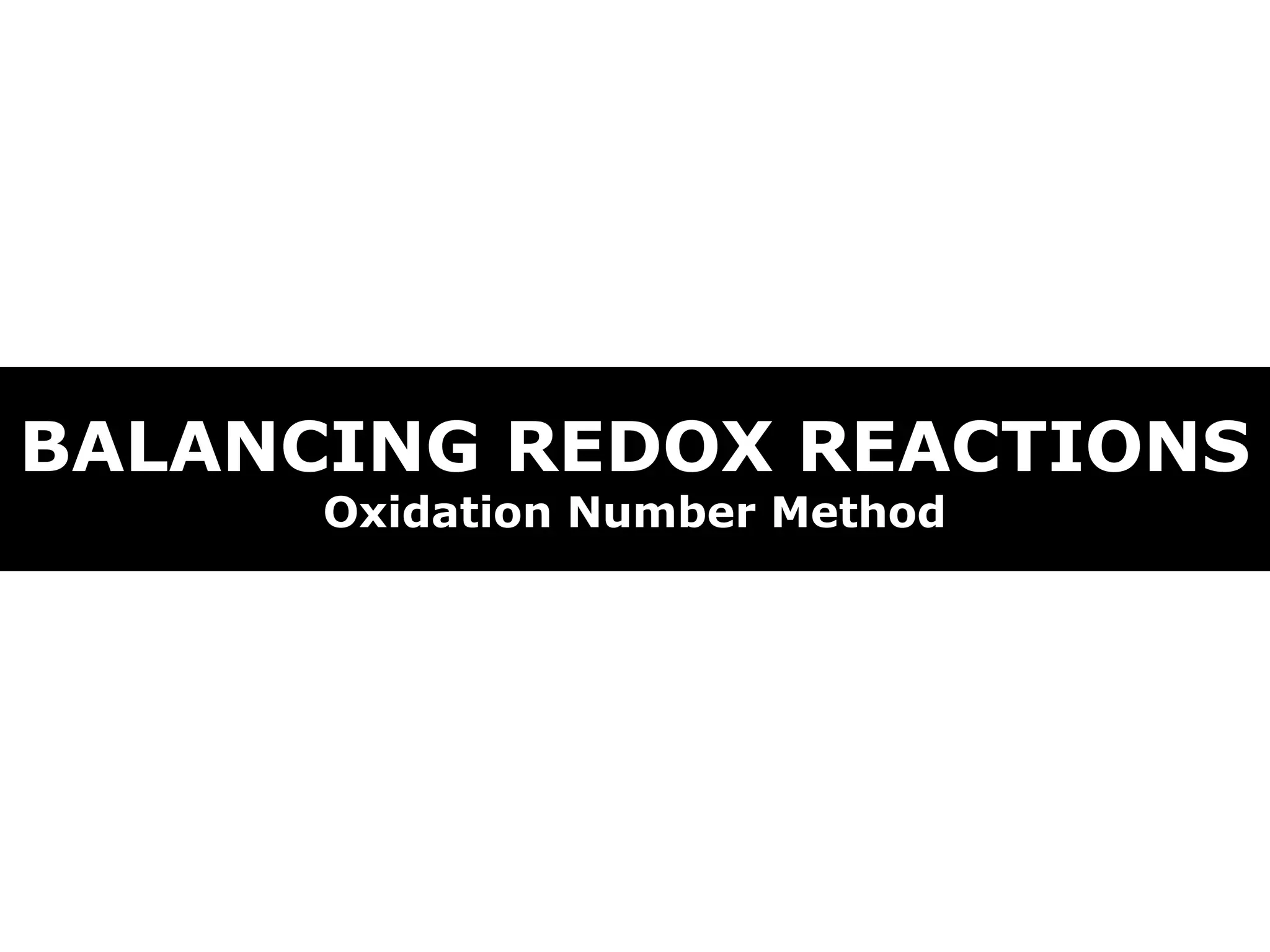 The document describes the oxidation number method for balancing redox reactions. It provides two examples showing the steps: