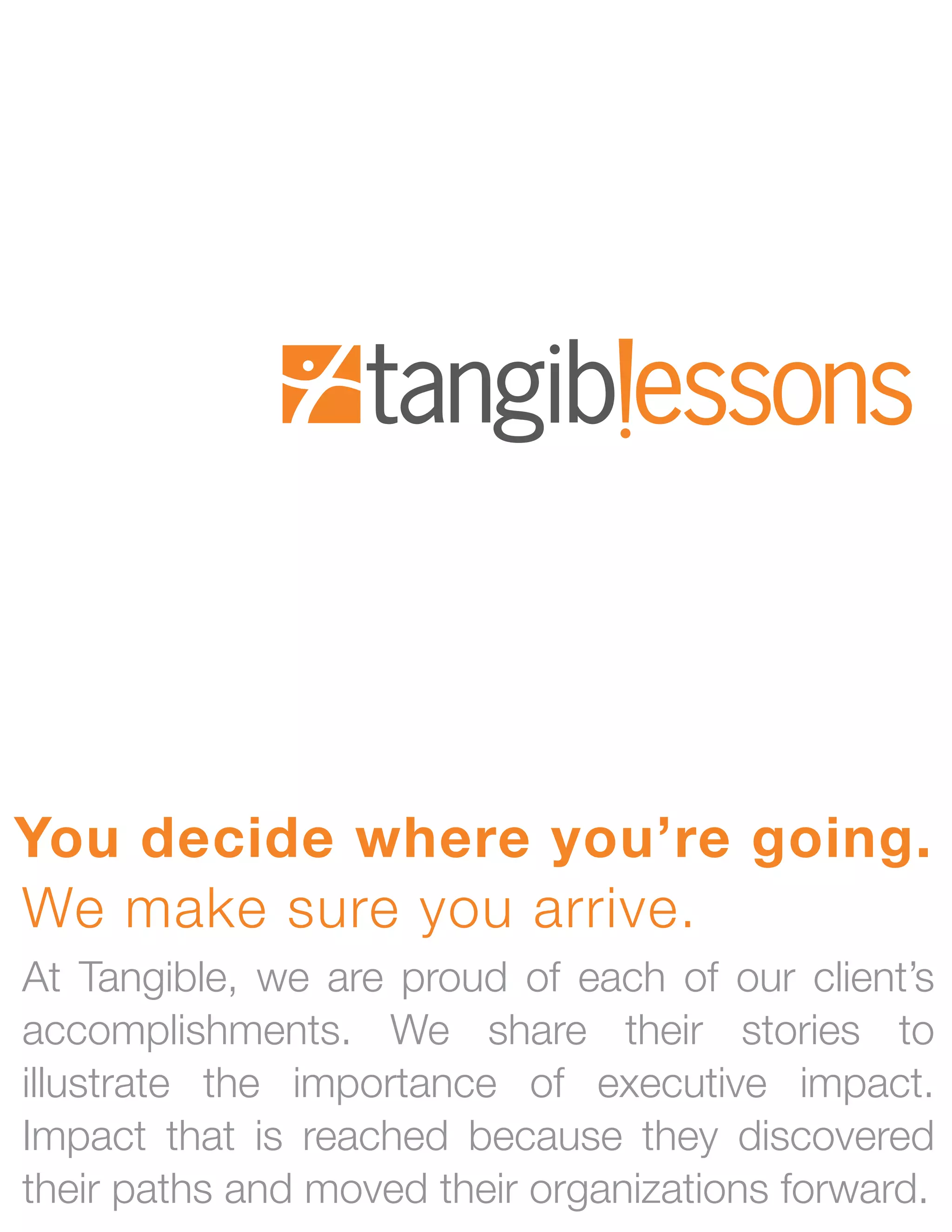 1. The document describes the author's experience on September 11, 2001 and how it prompted her to resign from her marketing job and start a coaching firm called Tangible.
