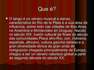 O tango é un xénero musical e danza,O tango é un xénero musical e danza,