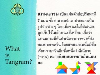 What is Tangram? แทนแกรม เป็นแผ่นตัวต่อปริศนามี 7 แผ่น
