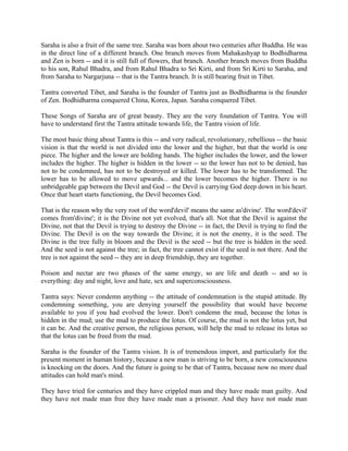 - The woman laughed at Saraha's learned ways and said he remained the same despite changing philosophies. Her primitive vitality attracted him to learn Tantra.