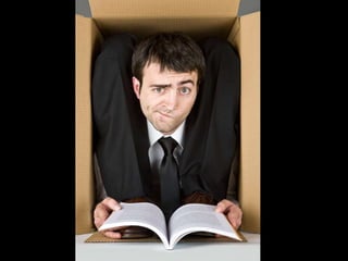 The document is a presentation about the future of libraries. It discusses how libraries need to adapt to the 21st century by focusing more on access, communities, programs, and social media presence rather than just collections and buildings. It provides examples of strategies libraries can implement like promoting staff on social media, doing signage audits, and using analytics. It also discusses how libraries need to help users build "decks of their dreams" rather than just providing hammers. Libraries should focus on community, conversations, relationships, and becoming more socially focused to remain relevant in the future.