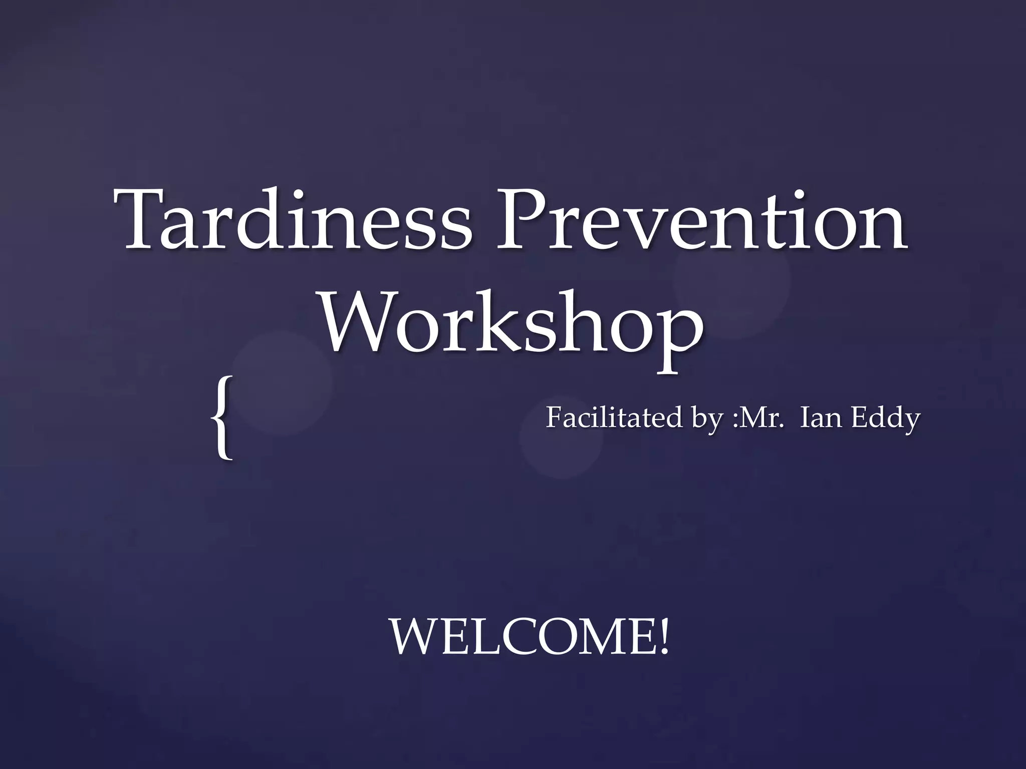 The document discusses strategies to address student tardiness. It provides tardiness data by grade level, showing that 10th graders have the highest number of tardies. The workshop will discuss ways administrators and teachers can help, such as identifying tardy patterns, tracking chronically late students, establishing classroom routines, engaging students within the first 10 minutes of class, notifying parents, and acknowledging on-time students. Overall, the goal is to have a data-informed discussion on improving current tardiness protocols and methods through stakeholder involvement.