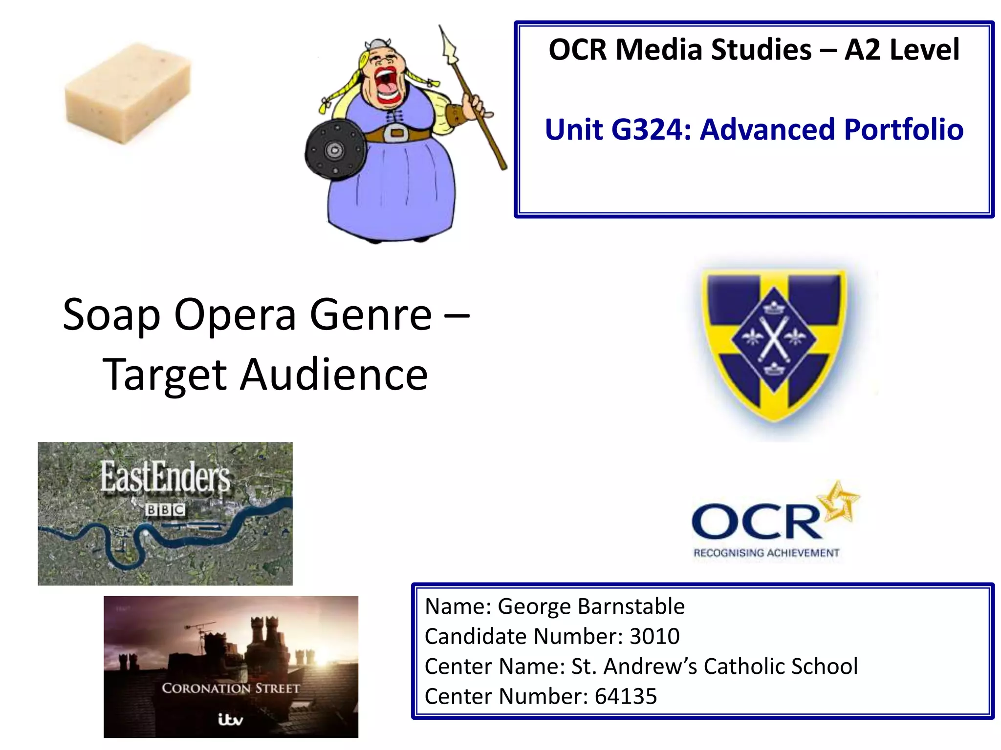 The document discusses the target audience of soap opera genre. It argues that the stereotypical target audience is white-British women aged 25-40, as they have increased free time at home in the evenings to watch soap operas due to gender stereotypes. It also notes that soap operas can appeal to all ages and socioeconomic classes by addressing real-life issues. Modern soap operas, like Coronation Street, are trying to attract younger digitally native audiences through social media platforms like Twitter.