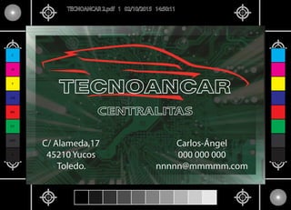 This document appears to be contact information for an individual named Carlos-Ángel located at C/ Alameda,17 45210 Yucos Toledo. It also references a PDF file called TECNOANCAR 2.pdf that was last modified on October 2, 2015 at 2:50 PM.