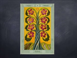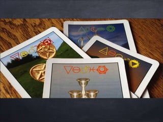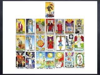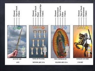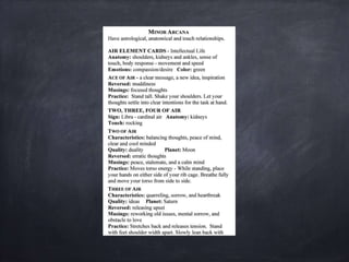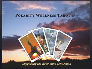 The document provides a comprehensive overview of Polarity Wellness Tarot, detailing its history, structure, and connections to various elements such as astrology and chakras. It covers the cards' major and minor arcana, numerology, and their relationship to bodywork and emotional wellness. Additionally, it offers insights into practices and exercises for enhancing spiritual awareness and physical health through tarot.