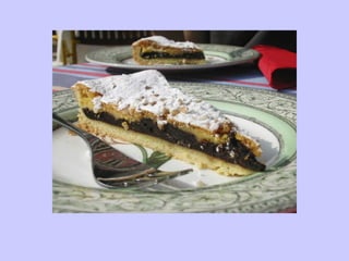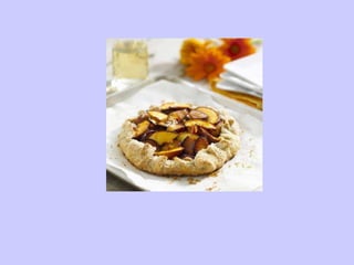 Tarts are more than just pies without tops. They can have a variety of doughs, fillings, and flavors. Common tart doughs include pate brisee (similar to pie dough), short doughs, pasta frolla, brioche, and puff pastry. Tarts are assembled either by placing a pre-made filling into an unbaked shell or by combining the filling with the shell before baking. Proper techniques for rolling out dough and blind baking shells are described. Finally, the document discusses popular tart fillings and flavors that can be combined.