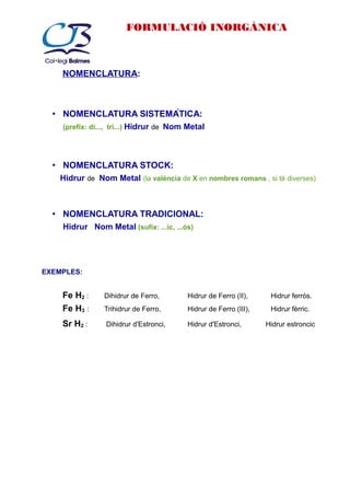 FORMULACIÓ INORGÀNICA