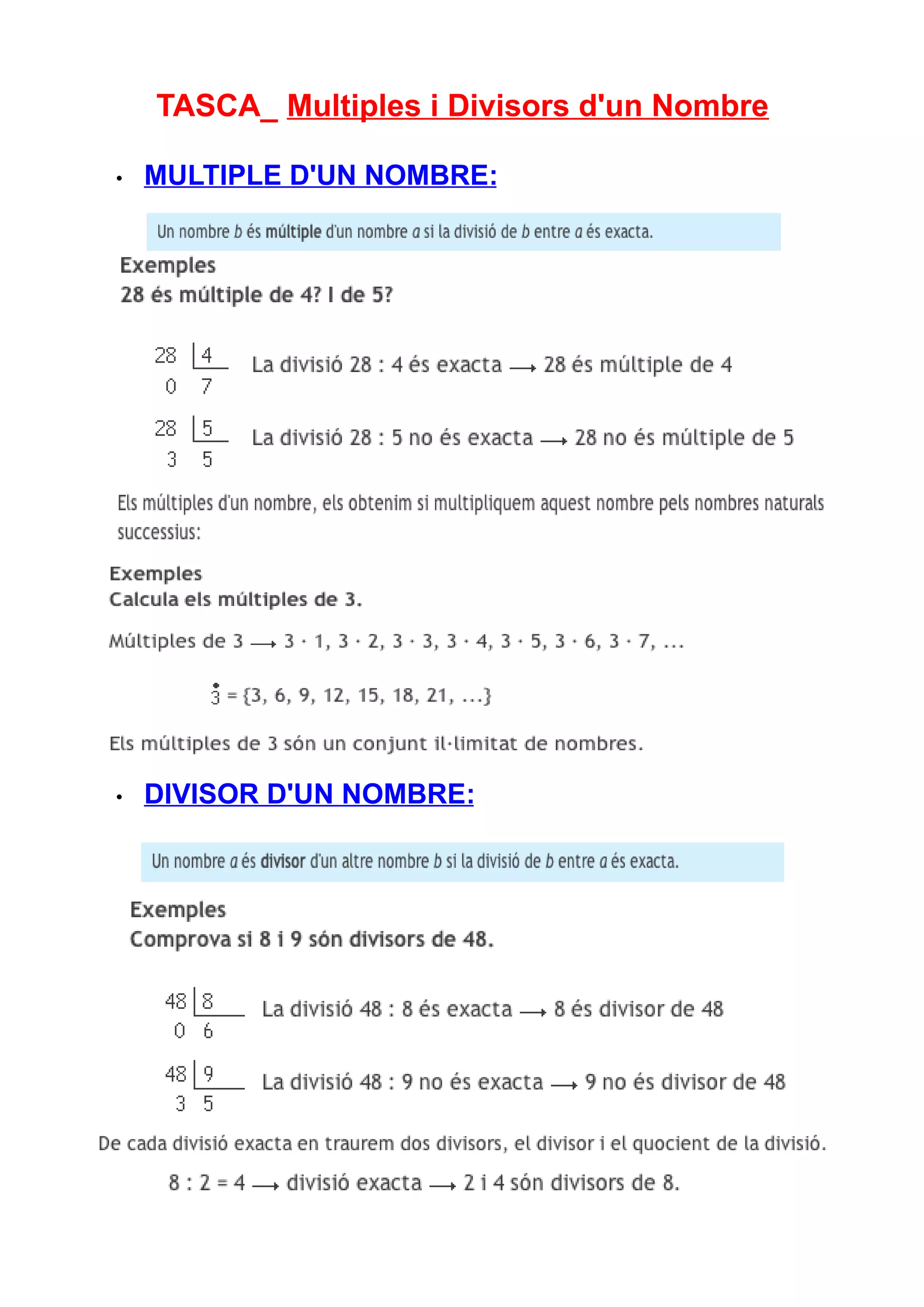 Tasca multiples i divisors d'un nombre