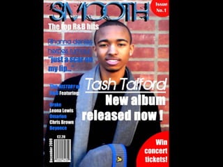 The document summarizes the design choices made for the cover of a magazine focused on R&B music. Key elements included a masthead in "Birth of a Hero" font, a selling line below in Impact font, issue number and contest details in red buttons also using Impact font. Cover lines and explanatory text relate to R&B and use Birth of a Hero and Impact fonts. Artist credits and the model's name are also included with font and color choices. Standard elements like a barcode, date, and price are placed at the bottom left.