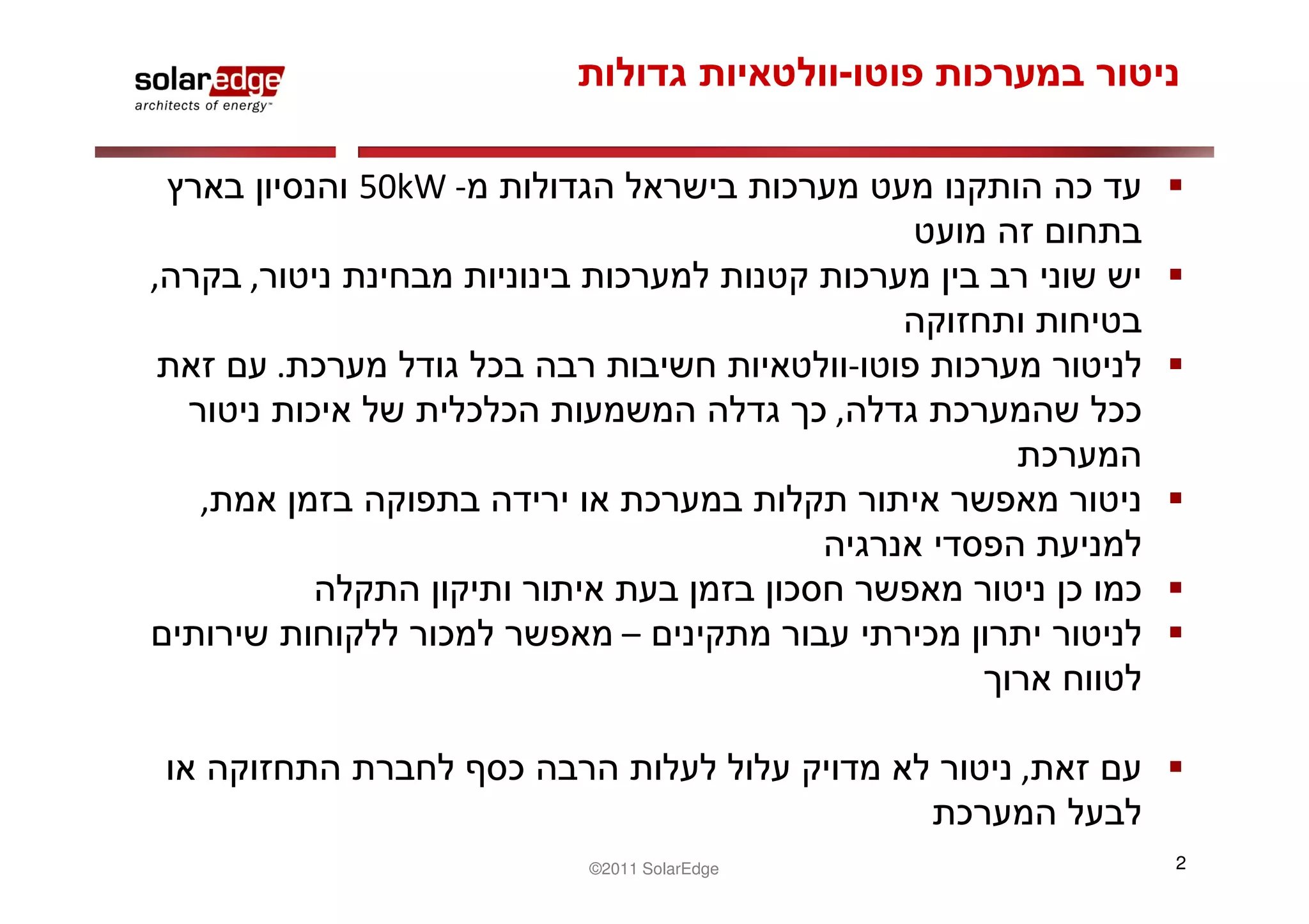 - SolarEdge provides string inverters and power optimizers for solar photovoltaic systems ranging from residential to large commercial installations of 50kW or more.