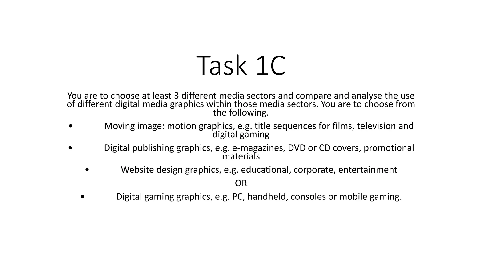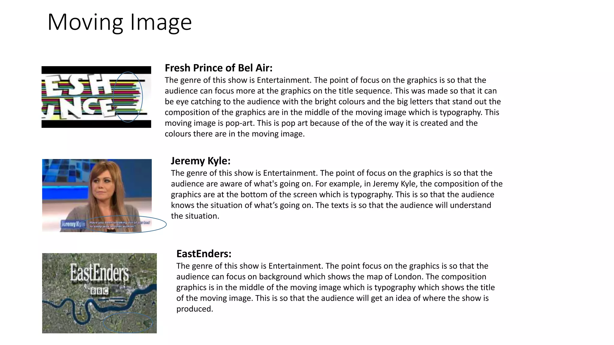 The document provides examples and descriptions of the use of digital media graphics in four media sectors: moving image, digital gaming, and digital publishing. For moving image, it analyzes the title sequences of three TV shows - The Fresh Prince of Bel-Air, Jeremy Kyle, and EastEnders - and describes how the graphics are used. For digital gaming, it examines the graphics in Fifa 17, GTA V and Call of Duty: Ghosts and how they display important information to players. For digital publishing, it looks at the cover graphics of two movie posters - Blood Diamond and Ratatouille - and how they are arranged to catch viewers' attention.