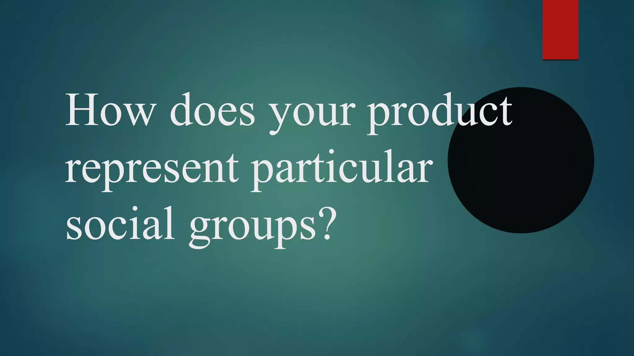 The document discusses the representation of characters in a film product. The female characters represent young, lower-middle class British teenage girls who socialize together. The male character is meant to be disliked as the antagonist and his face is hidden to add mystery. Close-ups were used with the female characters to engage the audience but the male character's face was hidden. Props like drinks and cigarettes help convey the idea of the teenagers being naughty. The characters generally reinforce social stereotypes but some changes were made to suit the target age group.