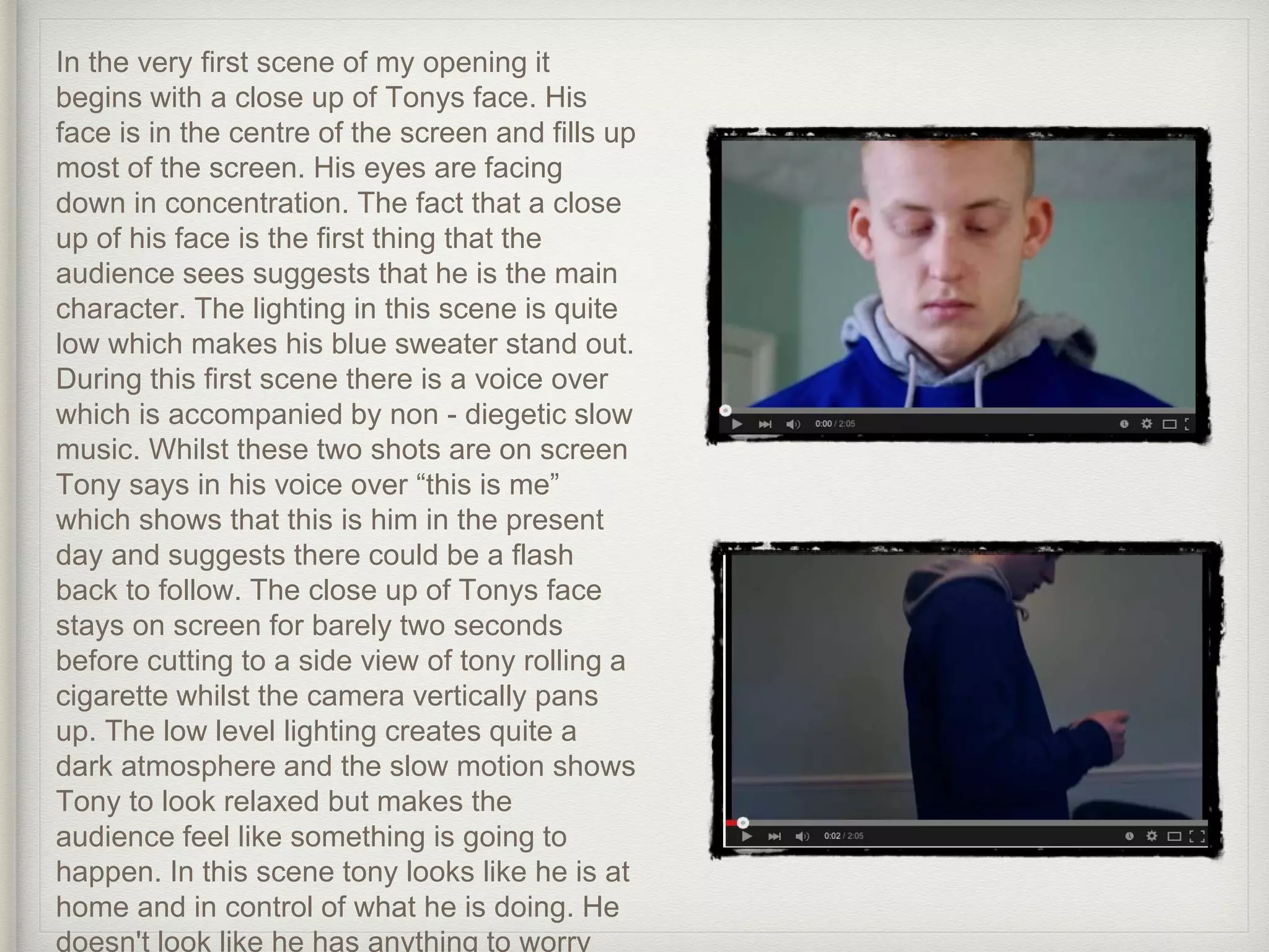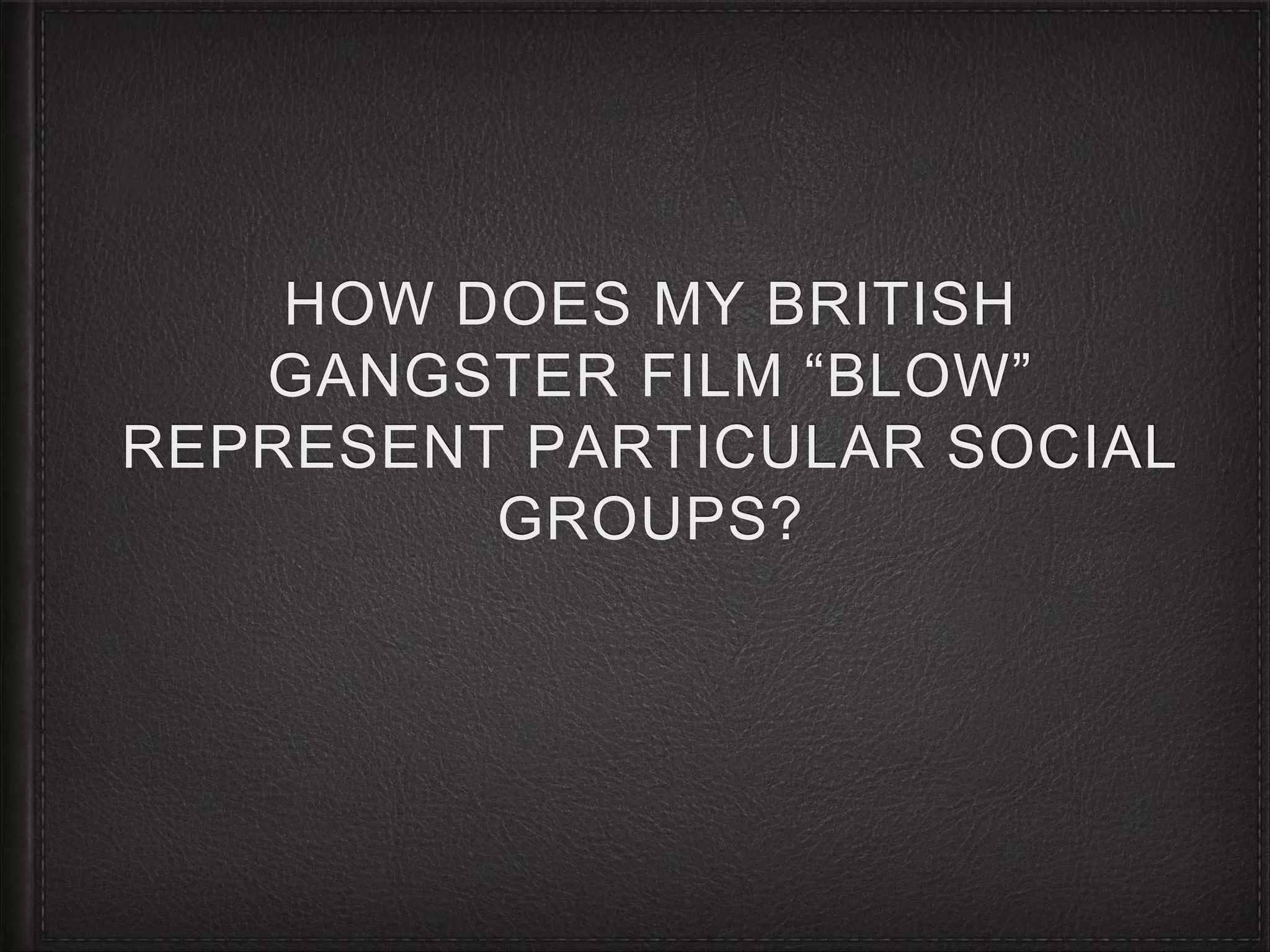 This document analyzes and summarizes the representation of social groups in the author's opening scene for a British gangster film called "Blow". The main character, Tony, is established as the leader of a gang through his dominant body language and clothing. A flashback shows him as successful and in control. The film then suggests Tony's trust has been broken as someone intrudes on his home. It cuts back to the present where Tony is shot and killed. The film introduces Tony's friend Max and a new character, Mitch, who approaches Tony in an intimidating manner, leaving the audience on a cliffhanger. The document notes the absence of women is deliberate to fit the gangster genre but minor female roles could be