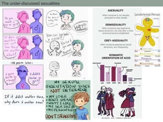 The document lists several topics that could be discussed or addressed, including under-discussed sexualities, sexual health education in schools, littering and community cleanliness, recycling and its importance, mental health and therapy, learning issues in school, social norms and barriers between men and women, limiting children's phone and tablet use, and encouraging more reading.