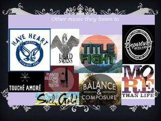 This audience profile targets the alternative/hardcore music scene of 15-25 year olds. They tend to use social media like Tumblr to discover new artists and attend live shows of their favorite hardcore bands. Research on websites and videos shows this demographic enjoys experiencing live music performances in their spare time beyond normal education or part-time work.