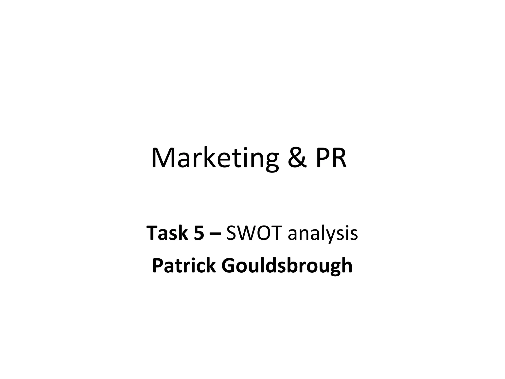 This SWOT analysis examines a proposed new MP3 player that would stream music from Spotify. Strengths include the innovative streaming feature, ability to undercut Apple's prices, and potential to break into the market. Weaknesses are lack of offline functionality, potential need for dual storage of personal music, and lack of advanced features. Opportunities exist to compete with Apple on price and emulate Spotify's success, while threats include increased royalty demands and hacking risks from internet reliance.