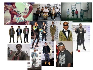 The document analyzes three fanzine articles the author created about hip hop themes. For the first article, the author took a more creative approach without grids and placed images and text freely. Images represented clothing brands mentioned in the article. The background image added depth and interest. For the second article, the background had more dead space but images were spread out evenly. A graffiti background represented hip hop and a white text box improved readability. The third article had a camouflage background and headers in an informal font to best represent hip hop themes in a more eye-catching urban style.
