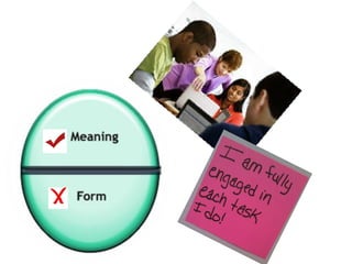 The document outlines the task-based language learning approach developed by Dave and Jane Willis, emphasizing the importance of meaningful tasks and authentic language use in education. It describes the phases of task implementation, including pre-task planning and language focus, while also discussing the advantages and disadvantages of this method. Overall, the approach aims to engage students by focusing on tasks rather than solely on language grammar and vocabulary.