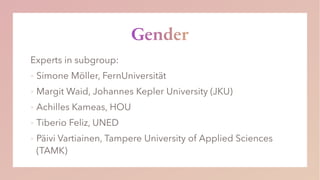 This document discusses gender diversity and inclusion at universities. It defines gender and notes challenges like imbalance in STEM fields and lack of women in leadership. Data on enrollments by gender and field in Finland, Germany and Austria is provided. Barriers for women in academic careers like motherhood are also mentioned. The document then discusses efforts by some universities to promote gender equality through plans, projects and requirements. It notes that both individual projects and identifying structural mechanisms for change are needed to truly address inequalities.