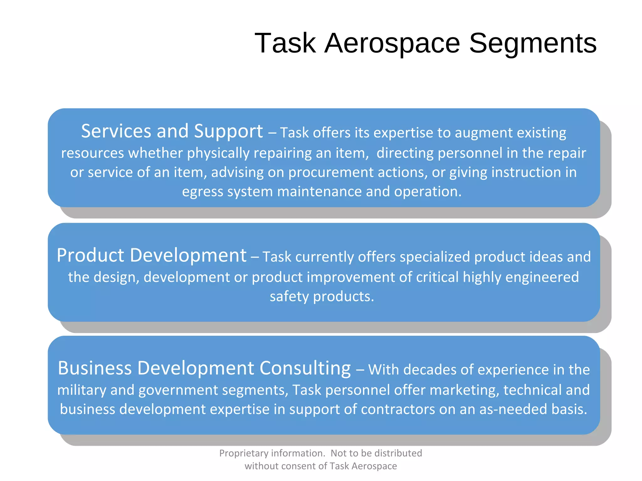 3) Business Development Consulting - With experience in military contracting, Task consultants provide marketing, technical, and business expertise to aerospace contractors.