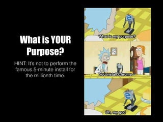 Task runners like Grunt and Gulp can automate workflows like compiling, standardizing, mapping and minifying code. They can also handle tasks like linting, debugging, error handling, unit testing, live browser updating and aiding in production deployment. Using a task runner can save significant time when starting new projects by automating common setup and installation tasks in just a few seconds versus manual configuration. Common JavaScript task runners each have pros and cons for different use cases and levels of experience. It's best to leverage existing starter templates and boilerplates online rather than building workflows from scratch. Caveats include ensuring compatibility when collaborating or across different machines.