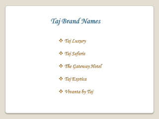 Jamsetji Tata founded the Tata Group in 1868 which has grown to include many companies. Some of the major companies include Tata Steel, Tata Power, Tata Motors which produces various car models, and Tata Teleservices. The Tata Group also owns the iconic Taj Mahal Palace Hotel in Mumbai as well as other Taj hotels across India and internationally. The Tata Group has diversified over time and now includes companies across various sectors such as consumer products, insurance, and telecommunications.