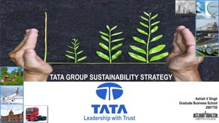 The Tata Group is one of India's largest conglomerates, operating in over 100 countries across six continents. It has over 30 listed companies and 1000+ subsidiaries. The Tata Group focuses on sustainability across its businesses, with the Tata Sustainability Group coordinating efforts. Each Tata company works on sustainability measures in areas like human rights, ethics, gender equality, health, environment and innovation. The Tata Group aims to improve quality of life through long-term stakeholder value creation based on leadership with trust. It faces challenges with its diverse businesses and global operations but is committed to sustainability reporting and community initiatives worldwide.
