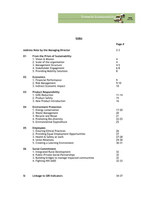 Tata Motors' sustainability report provides an overview of the company's economic, social, and environmental performance in fiscal year 2006-2007. Key highlights include: