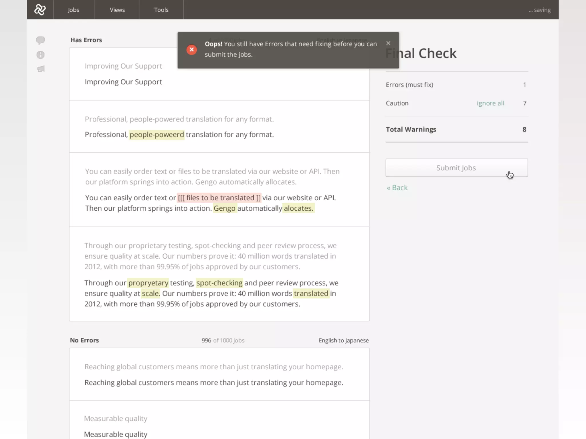 The webinar presented by Matthew Romaine discusses Gengo's translation technology, emphasizing its scalable open API ecosystem that allows for efficient handling of varying translation volumes. Key features include an extensive community of over 9,000 translators, tools for seamless integration, and multiple job submission capabilities. The API facilitates improved communication and feedback between customers and translators, ensuring high-quality translations.