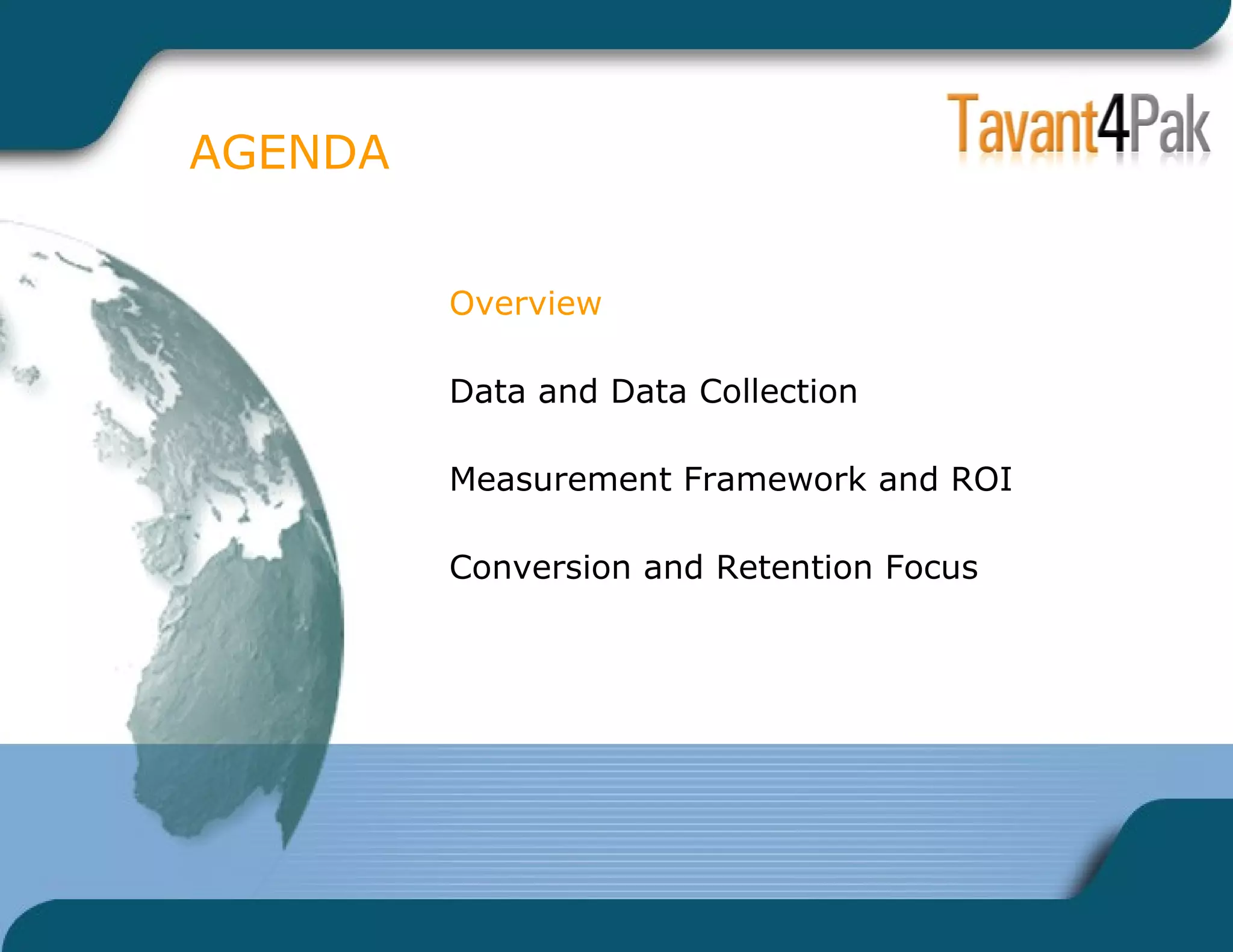 The document discusses the importance of analytics in measuring business outcomes, emphasizing that data collection should drive actionable insights for conversion and retention strategies. It introduces a framework for measuring return on investment (ROI) and performance metrics to enhance customer engagement and increase business value. Various approaches and tools for data segmentation, performance dashboards, and measurement maturity are outlined to help organizations utilize data as a competitive advantage.