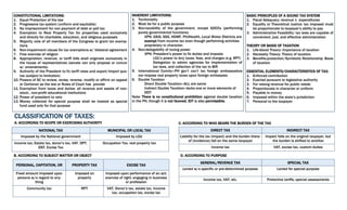 The document outlines the principles and procedures of taxation, detailing the authority to levy, assess, and collect taxes in the Philippines. It covers the purpose of taxation, types of taxes, the rights and responsibilities of taxpayers, and the limitations placed by law on taxation powers. Additionally, it specifies the roles of the Bureau of Internal Revenue and various tax-related entities in tax administration and compliance.
