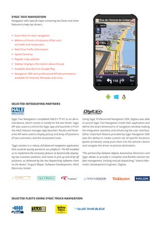 - Select partners have integrated Sygic's taxi navigation and SDK to dynamically display customer pickups and routes.