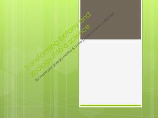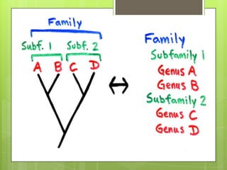 The document discusses the history of taxonomy from its earliest developments in China and ancient Greece through the modern Linnaean era. It notes that the Chinese emperor Shen Nung in around 3000 BC is considered the "Father of Chinese medicine" and helped develop early plant classification. It then focuses on Linnaeus, describing him as founding modern taxonomy by introducing binomial nomenclature in his works Species Plantarum in 1753 and Systema Naturae in 1758. These works established many of the rules that taxonomists use today to systematically classify and name organisms.