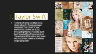 Taylor Swift is an American singer-songwriter who released her self-titled debut album in 2006, followed by several successful albums, including 'Fearless', '1989', and 'Reputation'. She is re-recording her earlier albums after her former label sold her back catalogue, with 'Fearless (Taylor's Version)' released in 2021 and 'Red (Taylor's Version)' scheduled for November 2021. Throughout her career, Swift has evolved her musical style and has been recognized with numerous awards, including Grammy Awards.