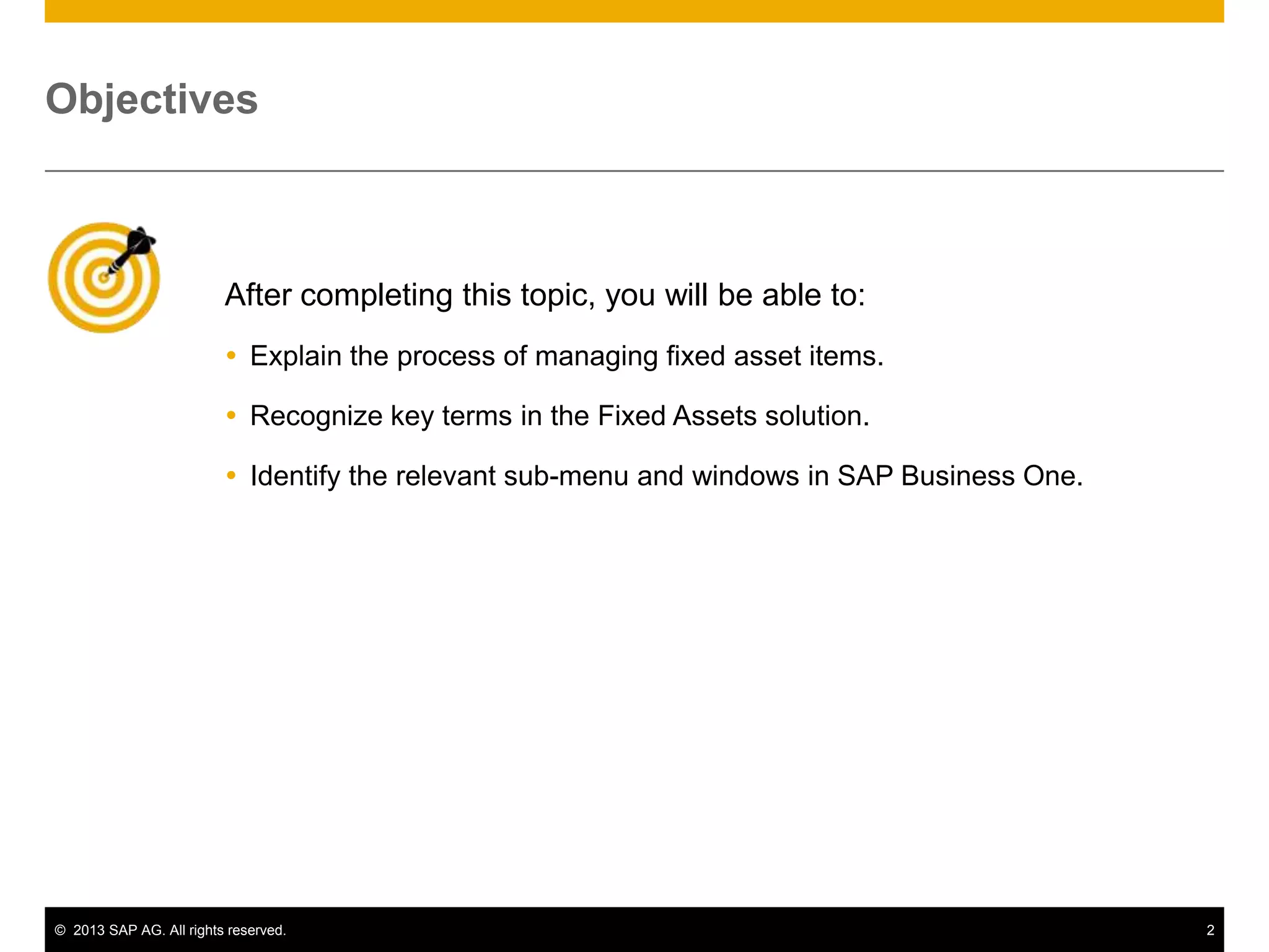The document discusses managing fixed assets in SAP Business One. It explains the process of defining asset master data by setting properties like asset class, depreciation area, and method. Assets are activated by issuing an accounts payable invoice to capitalize the cost. Depreciation is then calculated automatically or manually over the asset's useful life. When retired, an accounts receivable invoice or retirement document is made to remove the asset from the books at net book value of zero. The asset history sheet report displays all transactions for an asset in a fiscal year.