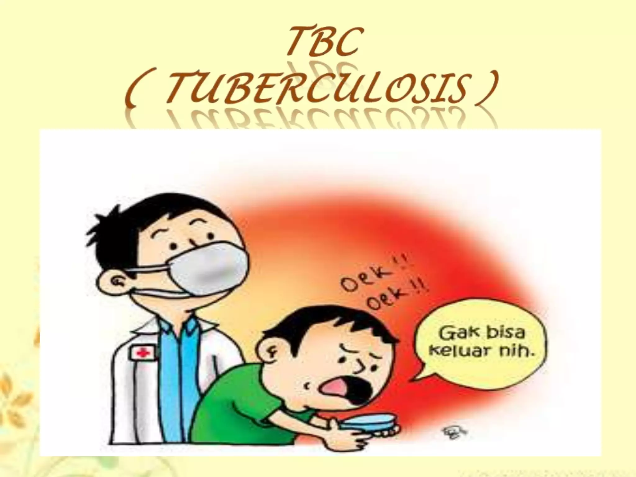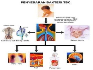 Penyakit tuberkulosis (TBC) adalah infeksi menular yang disebabkan oleh bakteri mikobakterium tuberkulosa, terutama menyerang usia produktif antara 15-35 tahun. Gejala TBC meliputi demam berkepanjangan, berkeringat malam, batuk lebih dari 4 minggu, dan penurunan nafsu makan. Pencegahan termasuk menjaga kebersihan, meningkatkan daya tahan tubuh, dan melakukan imunisasi.