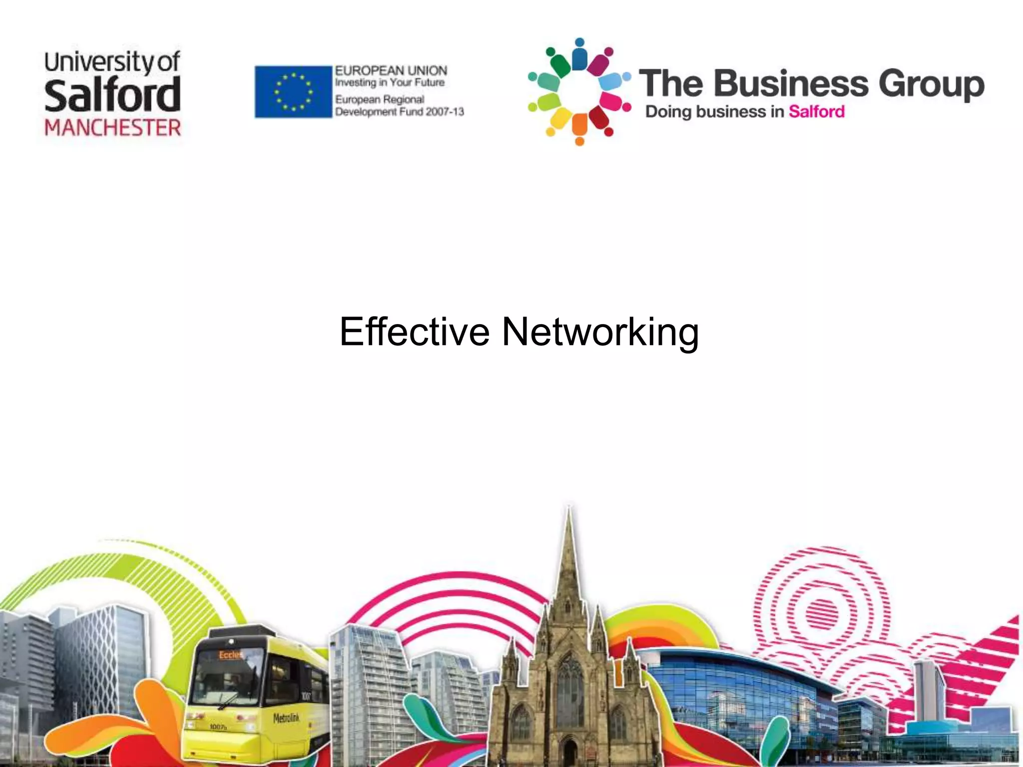 Effective networking involves building new connections through in-person and online interactions, helping others, and maintaining trustworthy relationships over time. Networking allows business owners to generate opportunities at low cost by directly reaching decision-makers and accessing wider networks. It is important to make the most of existing networks from education and work while also seeking out local networking groups, industry events, and online platforms like Meetup and LinkedIn to continuously expand one's business network. Proper networking involves introducing oneself memorably, listening to and helping other members, following up on connections, and supporting one's network through ongoing engagement and credibility.