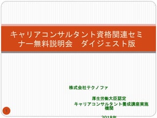株式会社テクノファ 厚生労働大臣認定 キャリアコンサルタント養成講座実施 機関 1 キャリアコンサルタント資格関連セミ ナー無料説明会 ダイジェスト版