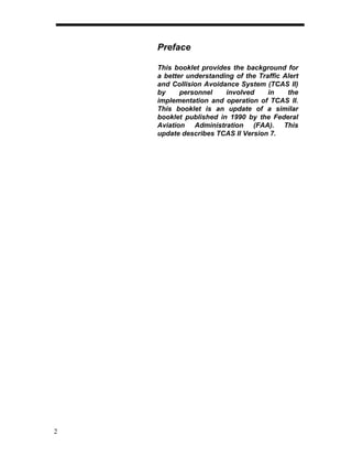 This document provides background information on the Traffic Alert and Collision Avoidance System (TCAS II). Key points include: